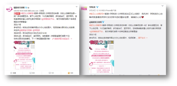 “毓荐团”成团初期正值520前夕,毓婷在微博端建立#毓见心动瞬间#专属话题,并围绕这一主题线上线下同步推进校园活动,与当代年轻人展开一场细腻的情感对话。配合毓婷品牌的传播节奏,毓荐团成员深入参与微博互动讨论,扩大话题辐射。利用自身的社交平台影响力,校园KOL吸引用户围观+互动,发布大量UGC内容诠释属于自己的“心动瞬间”,助推整场活动达到最高潮。高频互动在微博话题聚合,引爆毓婷传播声量,毓婷520活动收官之际,微博话题#毓见心动瞬间#曝光量超过220万。