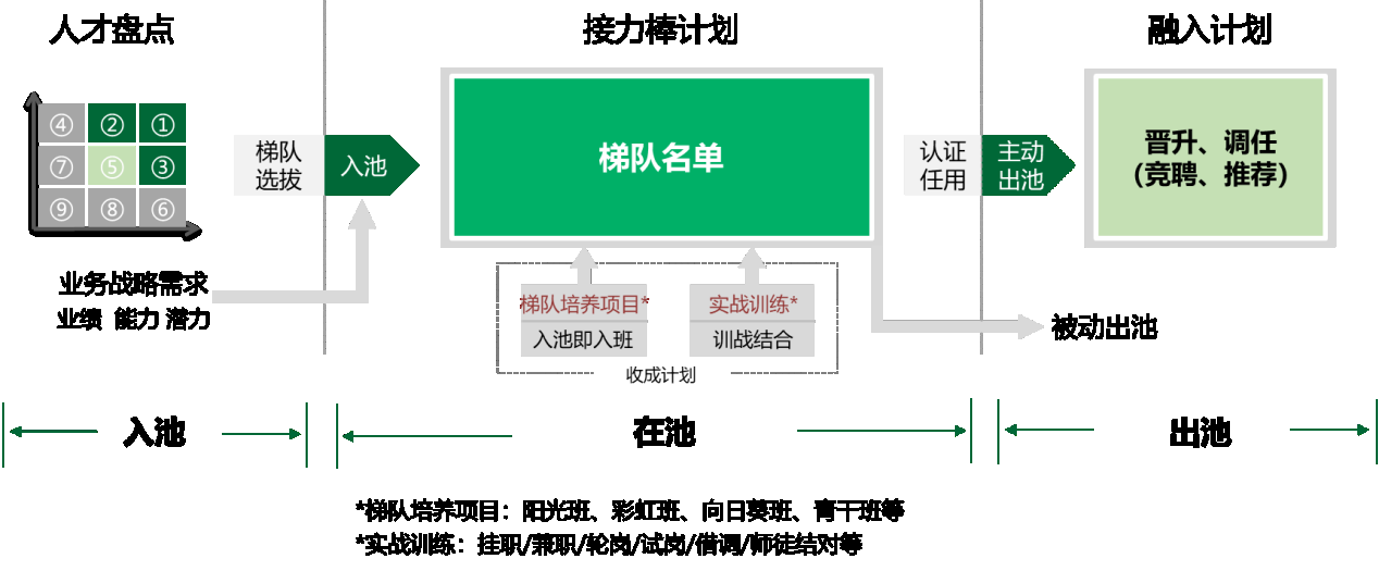 在人才盘点后,绿城中国全面了解了公司内部的人才结构,并制定了相应的人才策略。根据盘点结果,绿城中国开展接力棒计划,依据721原则设计了梯队发展项目、高管师带徒、定向轮岗、专项历练等训战结合的培养模式。同时试点“观察员机制”,对梯队人员进行行为观察及能力判断,及时发现长短板,过程反馈,在培养过程中识别人才,促进自我认知和发展,最终以资格认证的形式对梯队人员的领导力、专业力及关键经历等综合判断,应用于晋升或调任,实现人才快速出池。
