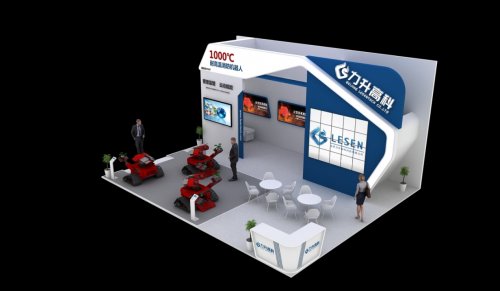 力升高科特装展位位于D馆,面积80平方米,展位号D107,现场设置了机器人展示区、企业展示区、洽谈区、接待区、VIP休息区五个功能区域。