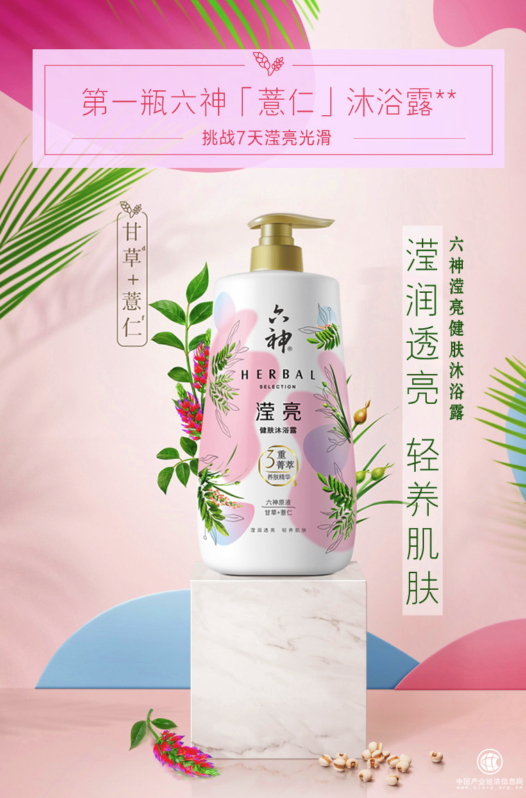 六神滢亮菁萃沐浴露,巧用薏仁焕发光泽