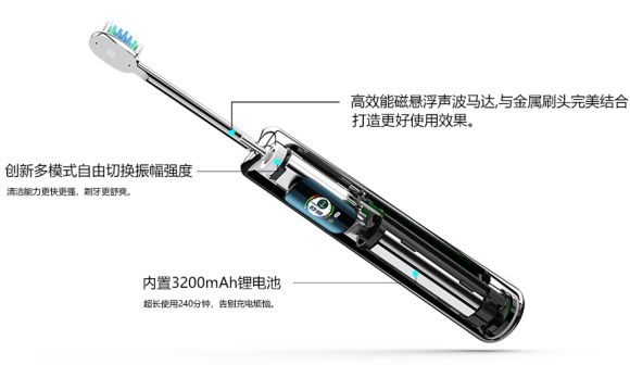 现在很多电动牙刷都强调自己使用的是无刷电机,诚然,无刷电机噪音低共振小,拥有许多有刷电动机没有的优点,但是无刷电机只是主要动力源,高端电机再好,也要配合其他优质配件才是完整的好电动牙刷。我们仍然以imask电动牙刷为例子,其除了高效能磁悬浮声波马达之外,还使用了独有的低频高扭力性能技术,以及为了深层清洁美白而研发的刷杆与马达转轴一体绑定技术,令马达的力量精准传导到刷头,不会流失到机身造成共振,所以清洁效果才能如此卓尔不群。