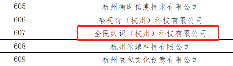 2021年9月,杭州市科学技术局发布了《关于2021年杭州市“雏鹰计划”企业拟认定名单的公示》,全民共识(杭州)科技有限公司凭借过硬的技术实力和市场表现成功入选!
