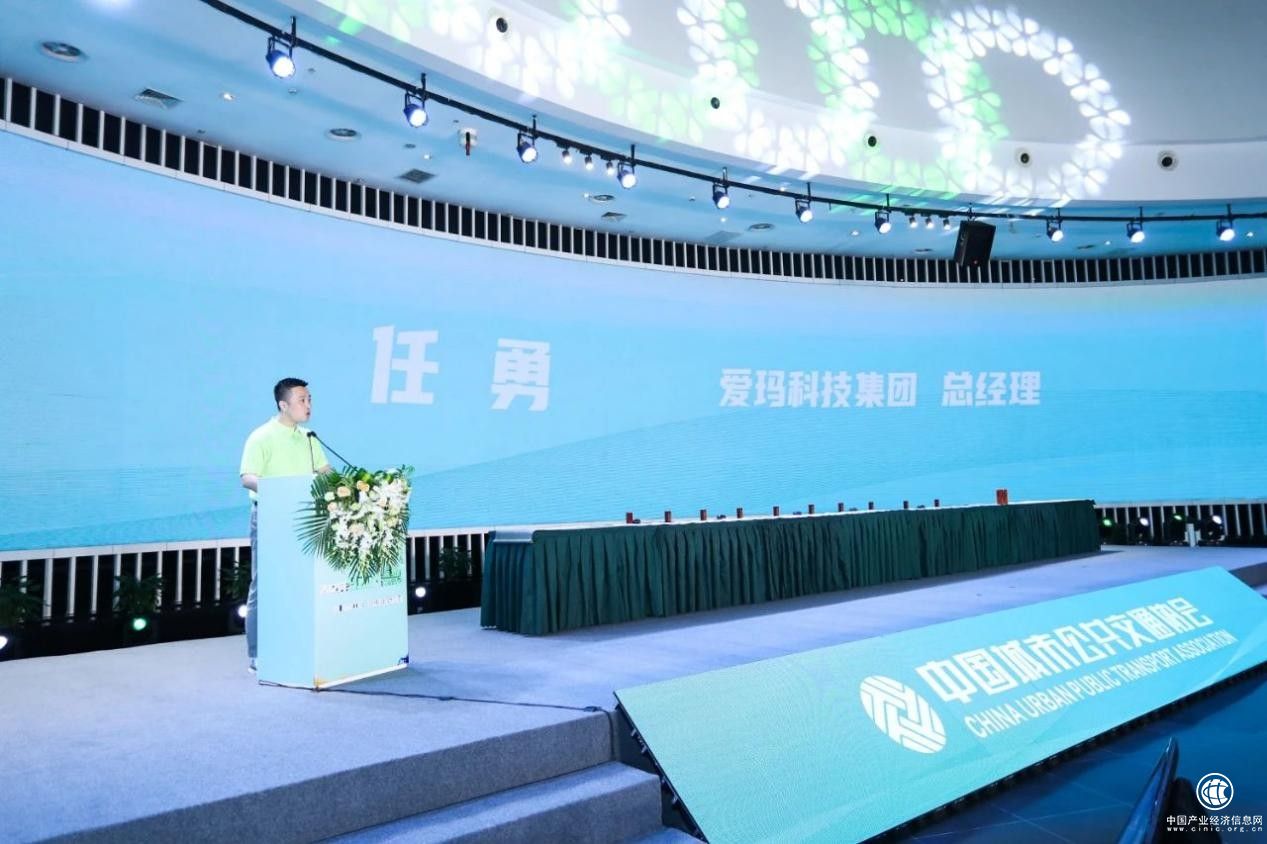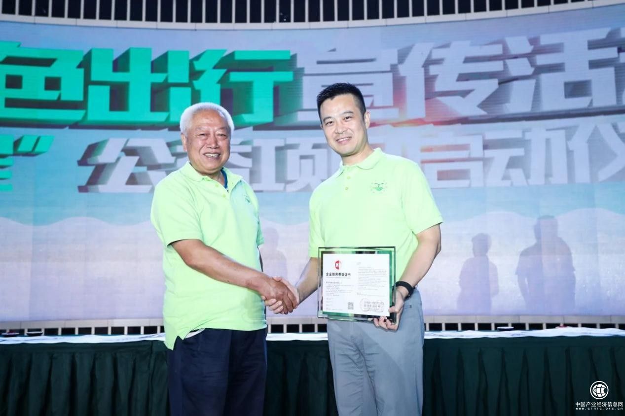 ▲中国城市公共交通协会理事长许中志为爱玛绿色出行诚信企业