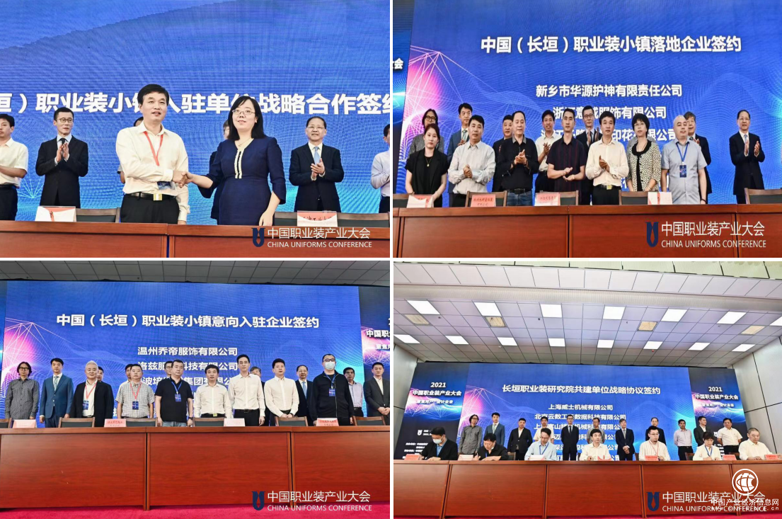 目前,已经有来自全国的多家职业装优秀企业入驻小镇。23日大会现场,在12位领导见签下,举办了中国长垣职业装小镇招商成果签约仪式。“入驻单位战略合作签约”、“ 落地企业签约”、“ 意向入驻企业签约”、“ 长垣职业装研究院共建单位战略协议签约”仪式,让我们看到了长垣职业装小镇聚力产学研、融合新生态的雄心与行动力。作为目前唯一一个以职业装为主的特色小镇,长垣职业装小镇聚力前行的探索实践,也将化作中国职业装产业高质量发展道路上的宝贵经验,成为职业装产业蓬勃未来的醒目碑石。
