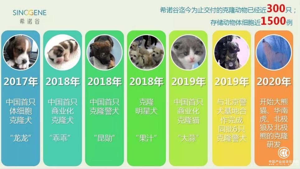 完善的科研能力加之多年的艰辛奋斗,也让希诺谷拥有丰富科研成果:2016年,世界首例基因编辑动脉粥样硬化模型犬“苹果”诞生;2017年,世界首例基因敲除克隆犬,中国首例体细胞克隆比格犬“龙龙”诞生;2018年,我国首只商业化克隆犬‘乖乖“出生;2019年,我国首只商业化克隆猫“大蒜”出生,他们的到来凝结着无数科研人员的心血,不仅为多个家庭实现与宠物重逢的梦想,也代表着国内生物科技技术的巨大进步。