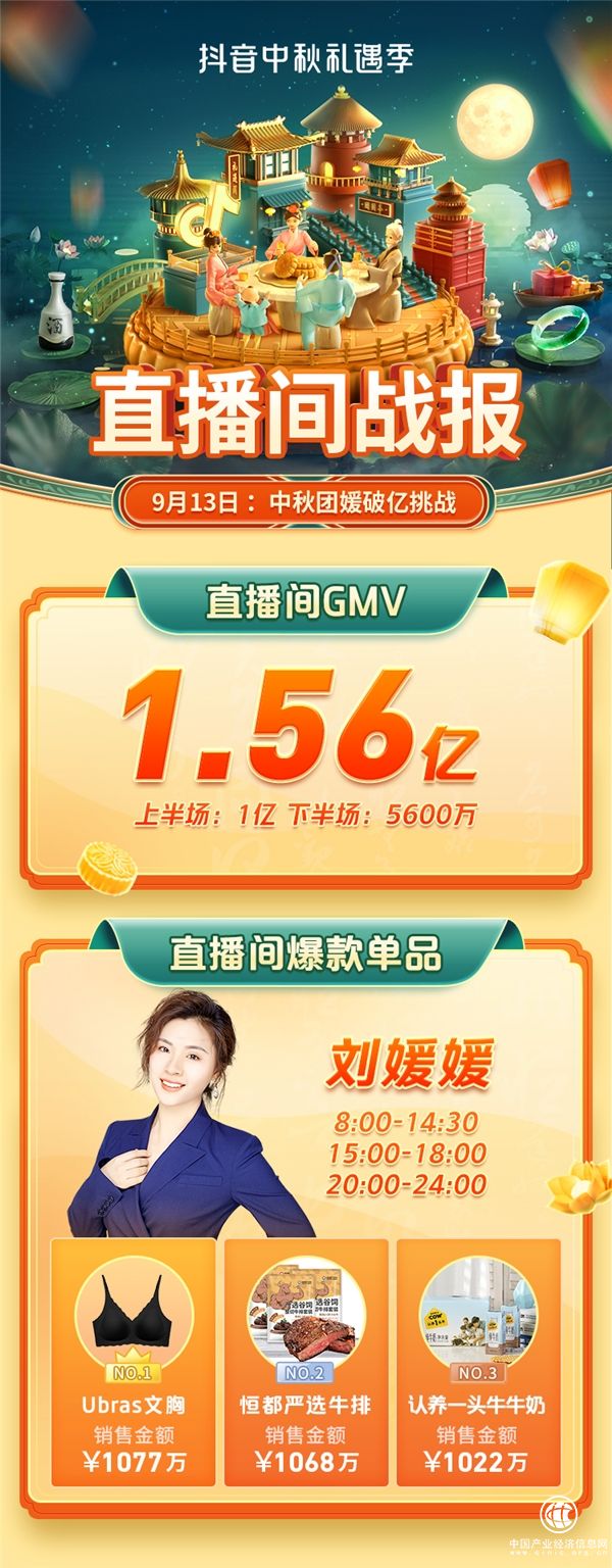 (9月13日,刘媛媛“中秋团媛破亿挑战”直播间GMV 1.56亿)