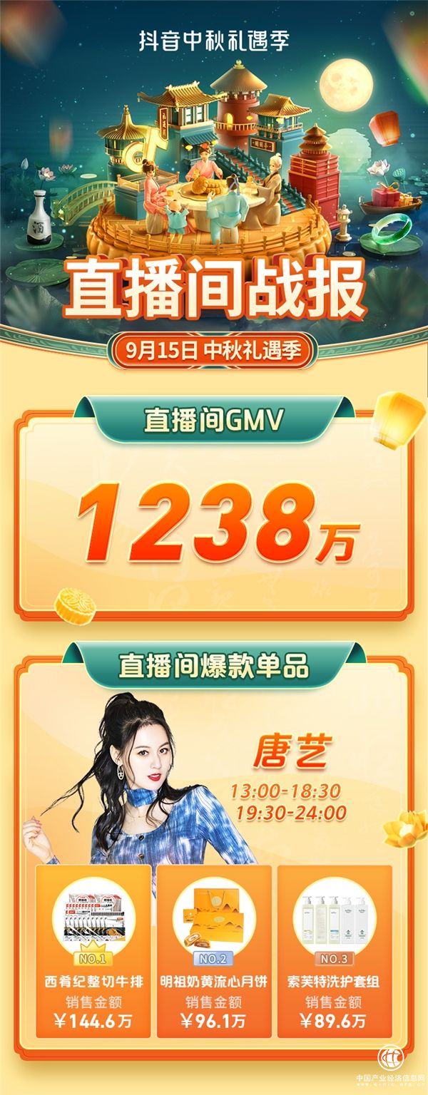 (9月15日,明星唐艺“中秋礼遇季”主题直播间GMV 1238万)