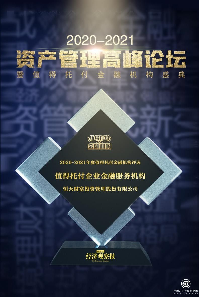 由《经济观察报》、经观传媒发起并主办的“2020-2021年度资产管理高峰论坛暨值得托付金融机构盛典”于9月28日线上召开。本届论坛旨与业界专家学者、金融领域企业高管,共同探讨新经济环境下资管行业发展的新格局。作为财富管理行业企业金融服务的先行者,恒天财富荣膺2020-2021值得托付金融机构“企业金融服务机构”荣誉。