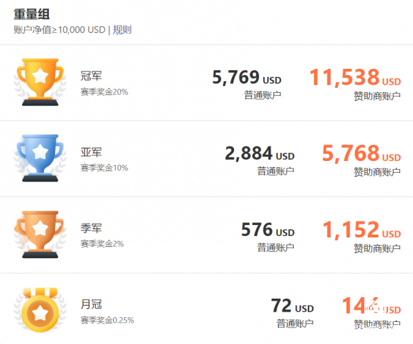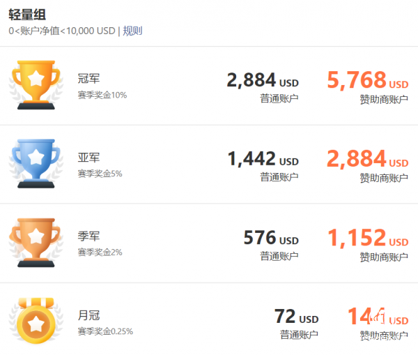 使用赞助交易商账户参赛,奖金翻倍