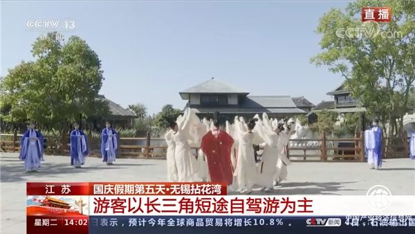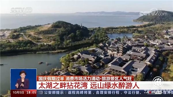 10月5日,央视《新闻直播间》以4分19秒的大时段现场连线拈花湾景区,展现“太湖之畔拈花湾 远山绿水醉游人”的无锡之美,央视新闻APP同步直播。晚间黄金档《共同关注》则从旅游市场活力涌动的角度报道了拈花湾游客的接待情况,让全国民众领略太湖畔拈花湾的大美风景。接下来,一起跟随央视的镜头,观赏打卡江南小镇。