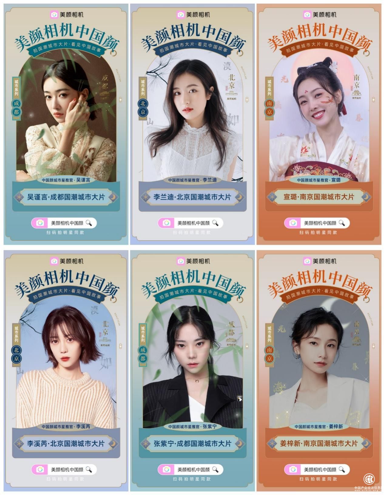 吴谨言、李兰迪、宣璐、李溪芮、张紫宁、姜梓新6位明星作为“中国颜城市星推官”晒出国潮自拍,邀请粉丝们一起拍出国潮城市大片。众多达人纷纷在社交平台拍摄同款并分享教程,在用户中掀起“中国颜”国潮热。