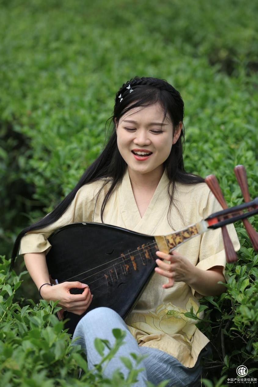 (新浪大V探访团成员“南音小书”在茶园中弹唱南音)