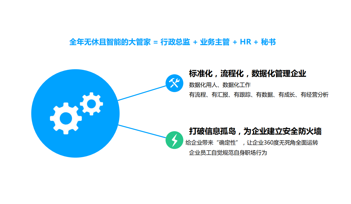 “通过对入职、离职以及企业经营管理等各个环节的问题深度优化和针对性解决,从而形成‘行政总监 + 业务主管 + HR + 秘书 ’的标准化、流程化、数据化智能生态,引导企业员工自觉规范自身职场行为,同时还为职场上的每个角色创造更高价值,为企业提供了更加标准化和流程化的管理平台,这对于我们这些小微企业而言是特别人性化的设计。”某企业负责人通过手机小程序展示操作流程时表示。据悉,该平台目前已实现PC端和手机端操作,满足企业主不同场景下的应用需求。