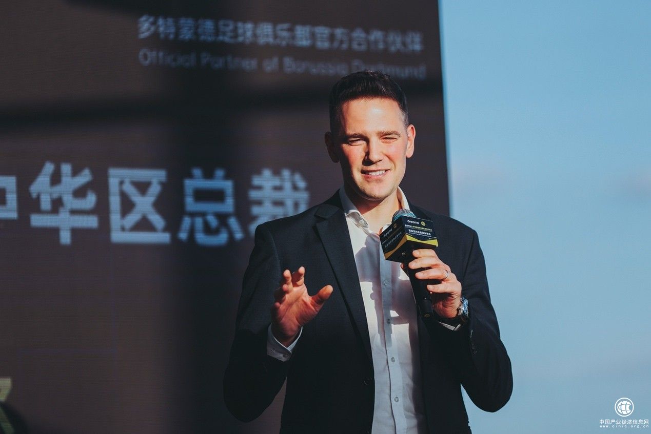 ▲多特蒙德足球俱乐部大中华区总裁本杰明·瓦尔(Benjamin WAHL)于签约现场致辞