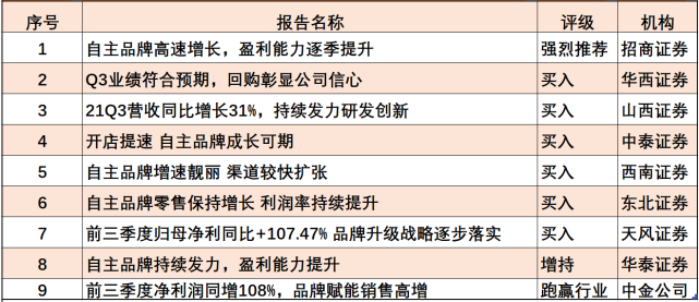 喜临门三季报发布后,截至28日17时,华西证券、山西证券、西南证券、招商证券、中金公司、中泰证券、东北证券、华泰证券、天风证券等国内主流券商机构纷纷给予“买入”、“增持”乃至“强烈推荐”评级。