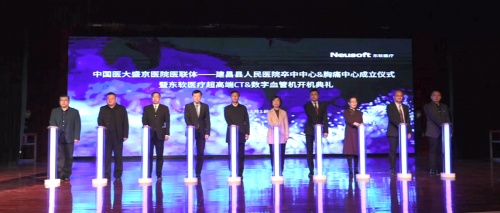 11月1日,中国医科大学附属盛京医院医疗联合体——建昌县人民医院卒中中心&胸痛中心双中心成立仪式在建昌隆重举行。基于东软医疗高端CT和DSA设备建成的建昌县人民医院卒中中心、胸痛中心双中心正式投用。自此,建昌县突发心梗、脑梗等急危重症的基层百姓,再也无需驱车百余公里到市内就医,在家门口就能完成及时救治。