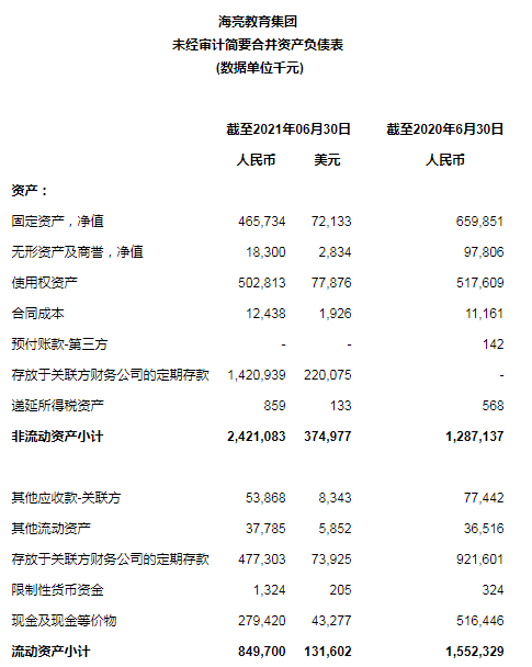 海亮铭优未来(浙江)教育科技有限公司及其子公司(以下简称“铭优未来”)系公司运营学科类培训业务的主体。2021年10月9日,公司以人民币653.0万元(100万美元) 的对价,将铭优未来100%股权转让至关联方海亮教育投资集团有限公司。2021财年铭优未来净亏损约178万元人民币,公司评估以上股权处置交易将不会对公司整体的运营及财务表现产生实质影响。