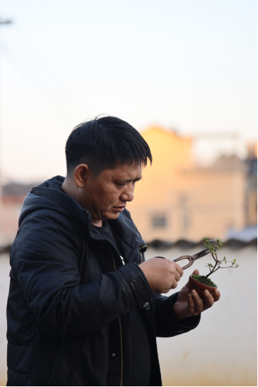 经营盆景遭遇的挫折,并没有让杨黎明就此放弃,反倒使他的心态变得更加平和。