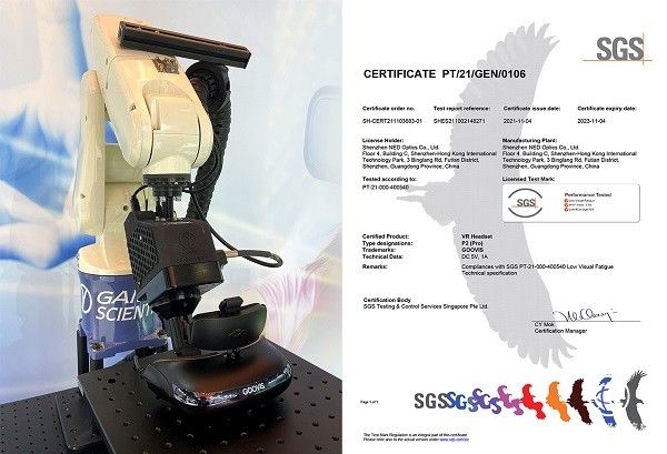 在SGS及中国标准化研究院的严谨和全方位的测试评估下,GOOVIS的各项测试结果均处于业内领先水平。GOOVIS之所以能成为全球首款获得SGS低疲劳认证的VR头显,有赖于纳德光学创始人彭华军博士与核心团队对行业的深邃洞见,以及秉持的初心 。