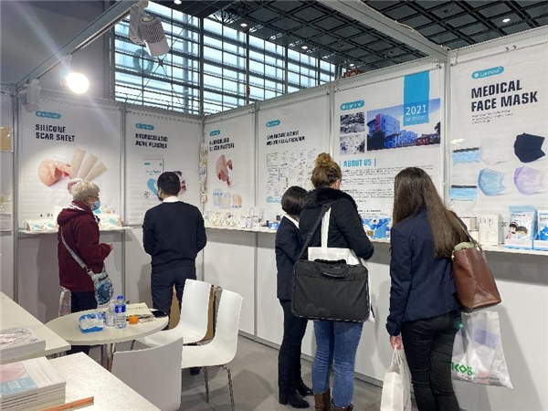 蓝禾医疗超透气医用外科口罩从根源上解决长时间佩戴导致的呼吸急促、心跳加快、闷热等问题,让每一位天使都能真正呼吸自由。作为本次展会上的人气王,在场的海外客户纷纷试戴,尤其对“超透气、零勒感”两大亮点赞不绝口,给予肯定。针对勒耳问题,采用立体新纺织技术,不断升级工艺,最终实现了真正的零勒感。最惊喜的是超透气医用外科口罩同时兼备呼吸顺畅和严苛防护两大优势,经第三方检测报告显示,细菌过滤效率超过99%,呼吸阻力低至11Pa左右。国外友人佩戴后还不忘录制视频为超透气口罩代言,超透气的成功亮相也为蓝禾医疗开拓更多海外市场奠定了基础。