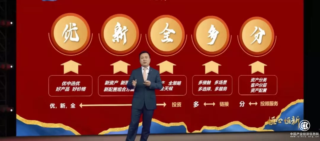 紧接着,蔡建波介绍到,恒天在构建全品类的资产配置方案方面下足功夫,秉持“优、新、全、多、分”货架管理五字经营方针,构建冠军100™精品货架,过去一年,货架上的私募产品及公募重点权益产品业绩均超越市场基准,为客户创造了良好的收益。配置业务方面,恒天更不断地拓展资产配置地图,重点推出蓝海FOF产品线,在配置型+工具型的双轮驱动下,做好选、配、管工作。以匠心精神持之以恒地为客户财富赋能,以不断探索的态度开拓更宽阔的未来,专业的资产配置能力、优秀的产品管理服务是对客户信任的最好回馈。