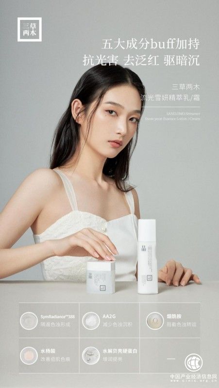 首先,三草两木在净地植物体系中臻选了金黄洋甘菊,以净地植物的科研成分的自然力量来赋予肌肤强大的保护力,可以直击黑化反应,以植萃成分带来自然界的天然爱抚。品牌从植物精萃的至佳配比到独创专研,有一套非常成熟的科学方案,作为自然科学理念的标志性产品,三草两木白晶家族体现出品牌升级后的用心钻研,而且非常完美诠释了“自然”与“科学”的匠心。