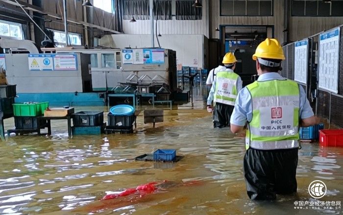 浙江人保财险工作人员深入“烟花”台风受灾企业现场查勘。