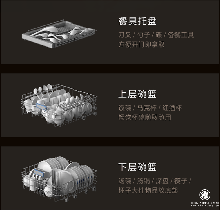高潮后的间奏也要轻重有调,02GA洗碗机具备新式2+1层碗篮高效分区收纳:餐具托盘开门即取;上层碗篮可收纳饭碗、马克杯、红酒杯,畅饮杯碗轻松整齐排列;下层碗篮包容汤碗、汤锅、深盘、筷子等,各式大小总能相宜。每一件餐具都能在其中找到精准容身所在。