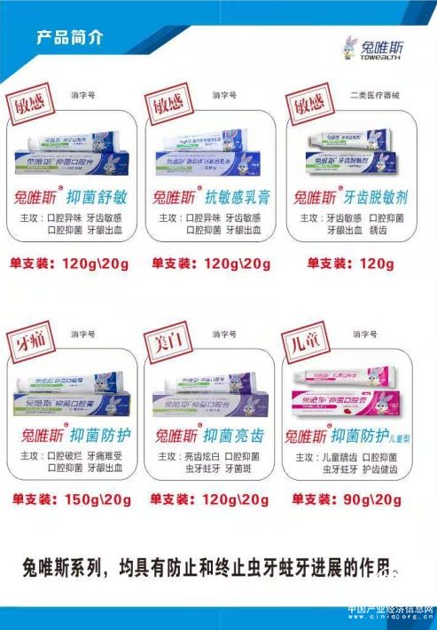 而针对导致蛀牙的根本原因是口腔有害细菌,兔唯斯推出了抑菌率>99.9%的兔唯斯消字号口腔抑菌牙膏,积极响应世界卫生组织提出的“8020运动”计划(即到了80岁也能拥有完好的20颗牙齿)和国家卫健委颁布的《健康口腔行动方案(2019-2025年)》,通过各种渠道传授口腔健康知识和使用抑菌牙膏的意义,推出根据不同人群和各种口腔问题设计的6个系列牙膏【抑菌防护型: 特攻口腔破烂、牙痛难受反复、虫牙蛀牙、口腔抑菌、牙龈出血等;抑菌舒敏型:特攻口腔异味口臭、牙齿敏感、牙龈肿痛、牙齿松动、牙龈出血、护龈固齿;抗敏感乳膏:特攻口腔异味、牙齿敏感、牙龈红肿、牙齿松动;牙齿脱敏剂: 特攻严重牙齿敏感、口腔抑菌、牙龈出血、龋齿;抑菌亮齿型:特攻亮齿炫白、口腔抑菌、虫牙蛀牙、牙菌斑;抑菌防护儿童型:特攻儿童龋齿、口腔抑菌、虫牙蛀牙、护龈健齿。】,针对性使用兔唯斯,可快速改善常见的十大口腔问题:虫牙蛀牙、牙痛难受、牙龈出血、口腔抑菌、口腔破烂、牙龈肿痛、牙菌斑、牙齿松动、口臭、牙齿敏感抗冷热酸甜等。