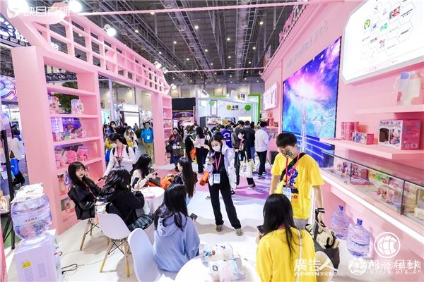 展位区域将中国风与少女心完美结合,古色古香的屋檐悬挂着精美的宫灯,元七七的精美周边与授权产品有序摆放其中,吸引了不少年轻人拍照打卡。还有互动小游戏供大家参与,一起元气满满。