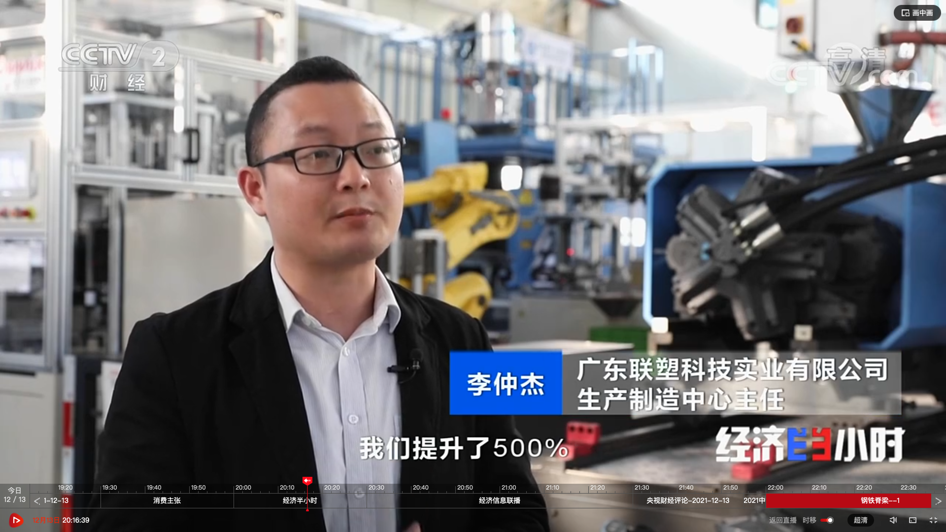 12月13日,央视《经济半小时》走进广东佛山,走进联塑,探访和报道了联塑的数字化智能化一级工厂,为人们展示联塑智能化转型进程中的关键一环。
