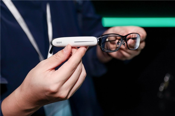 作为大会上发布的另一款新品,OPPO新一代智能眼镜OPPO Air Glass同样带来了亮眼的表现。其中最明显的就是产品的轻量化,OPPO Air Glass的重量为30克,而镜片厚度也只有1.3毫米,这样的重量和厚度对于佩戴者来说压力很小,舒适度很不错。
