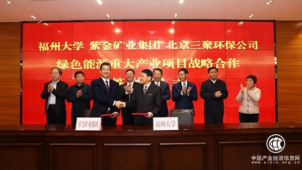 2021年12月10日,紫金矿业与福州大学、北京三聚环保新材料股份有限公司在福州举行绿色能源重大产业战略合作项目签约仪式,合资成立高新企业,聚焦氢能产业“卡脖子”难题。福建省教育厅王飏副厅长、福建省科技厅叶碧海副厅长、福州市人民政府朱训志副市长,福州大学领导陈国龙、张星、黄志刚,紫金矿业领导陈景河、邹来昌、林泓富、蒋开喜,北京三聚环保张鹏程董事长等出席签约仪式。