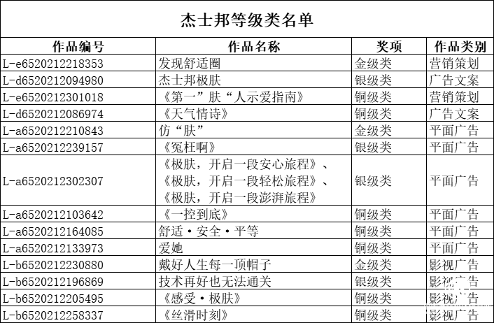 杰士邦命题等级奖获奖名单↑
