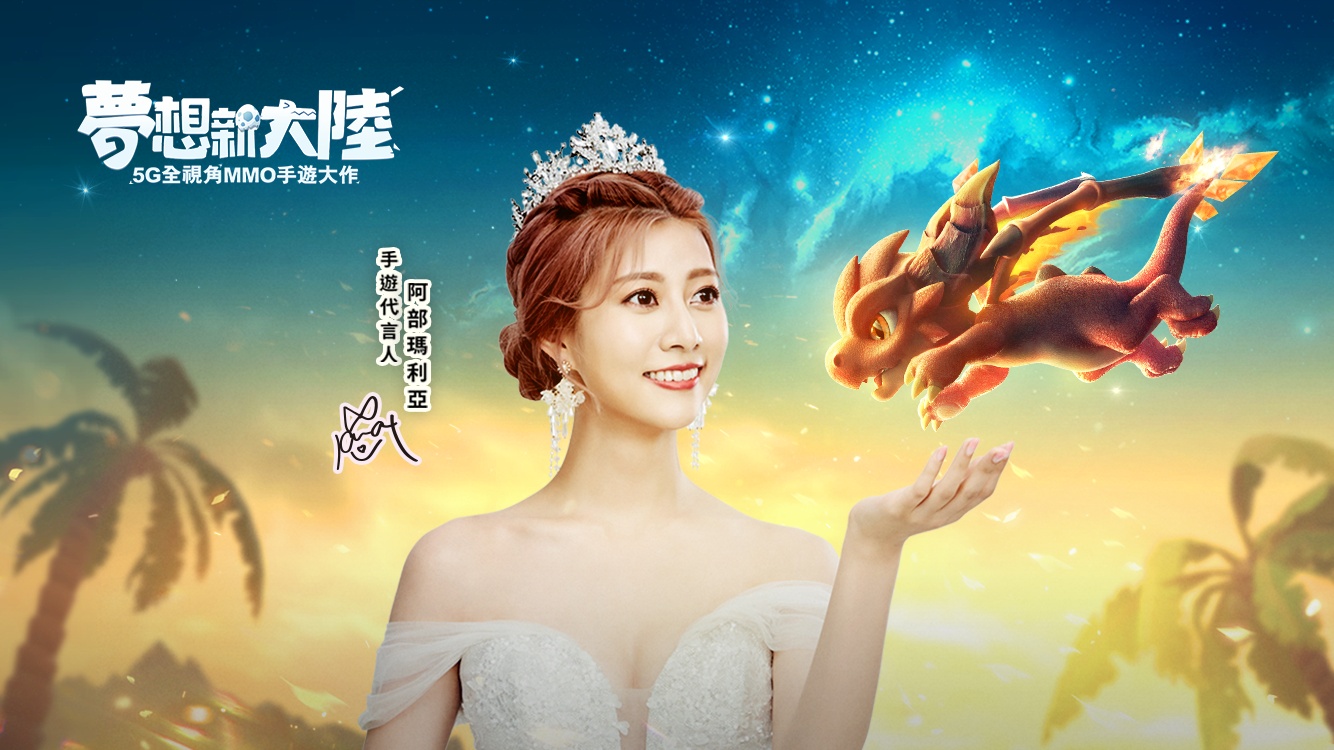 11月26日《梦想新大陆》登录港澳台地区,由国际偶像歌手阿布玛利亚和美丽本人进行代言。电视广告片主题曲由美丽本人作词作曲,广告片内独家曝光阿部玛利亚的梦想,还有超可爱豆豆龙以及拟真恐龙一起参与演出。该游戏上线台湾地区首日,便登顶App Store免费游戏榜。奇幻瑰丽的冒险世界与国际偶像歌手的跨界联动再次获得认可,强强联合形成的《梦想新大陆》宣传矩阵,在港澳台地区收获成功。
