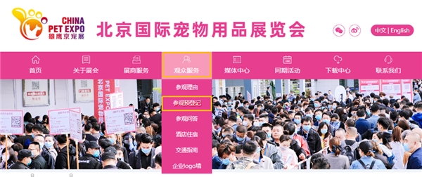 点击【我要参观】或点击网站菜单栏【观众服务】→【参观预登记】进入报名入口,确认提交成功后您将获取到完整报名信息。