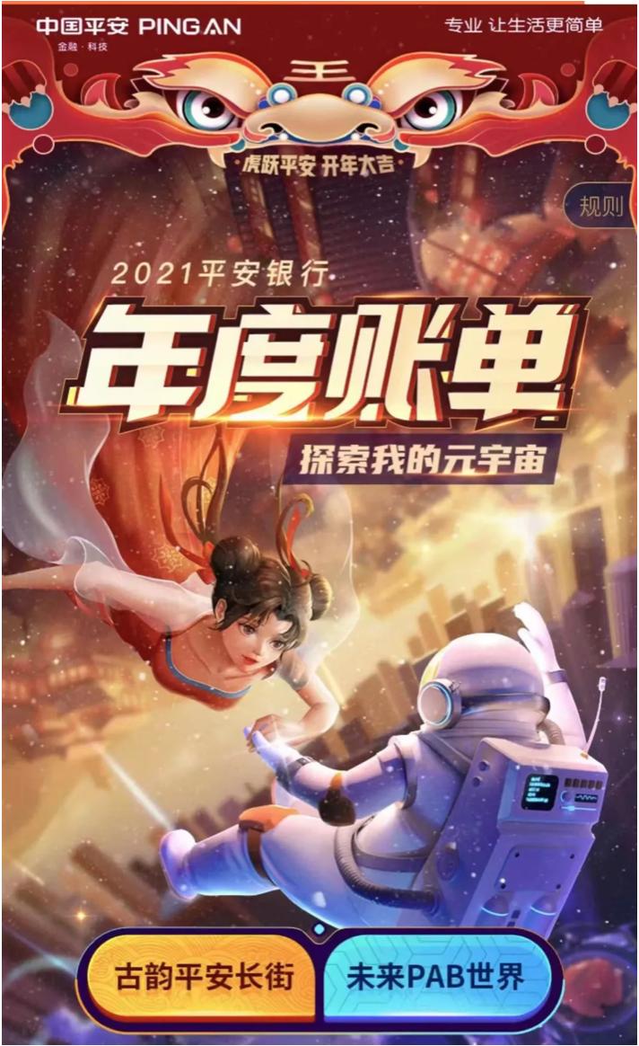 提供足够广阔的业务数据,让用户根据自己使用的业务和产品去探索发现 2021 的金融账单,这可能就是平安银行元宇宙最大的特色了吧。
