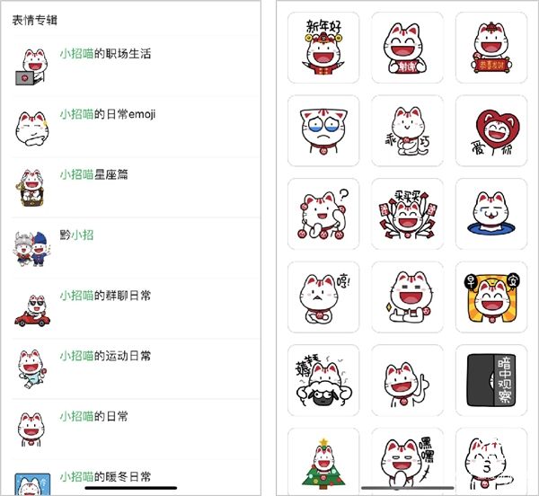 在网络上也时常能看见小招喵的身影。招商银行紧跟网络热点,推出了小招喵系列表情包,霸占了不少年轻网友的聊天记录。