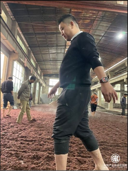 踢糟,是指用洗得干干净净的健康的脚,把梗分的更细,使摊晾好的小红梁更松散。看我们愉快的jiojio!