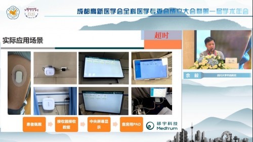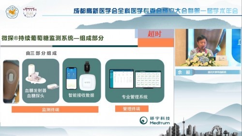四川大学华西医院苏巧俐主任做会议主持,四川大学华西医院佘毅主任做了题为“远程动态血糖监测在社区医院的应用”的报告。佘毅主任介绍TIR(目标范围内时间)作为评估短期血糖变异性的关键指标之一,能更好的反映相同HbA1c时低血糖的发生状况和血糖变异程度,且TIR与HbA1c之间存在良好的线性关系,所以逐渐成为医护工作者更为关心的指标。移宇科技的持续葡萄糖监测系统(CGMS)因可提供包括TIR在内的多个重要指标和报告,且产品优势突出、全院血糖管理系统简化血糖管理的流程同时,可以帮助医生多方位掌握患者葡萄糖变化水平,检测结果准确,为医患带来更多的获益,优化了血糖监测管理。