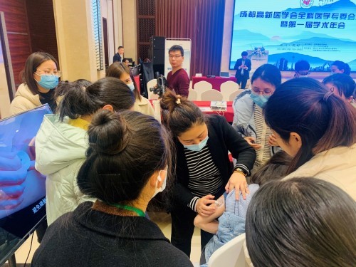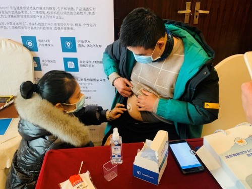 在会议的工作坊环节,参会专家对移宇科技的动态血糖产品表现出浓厚的兴趣,部分专家现场试戴产品,对移宇科技的品牌和服务表示高度认可。