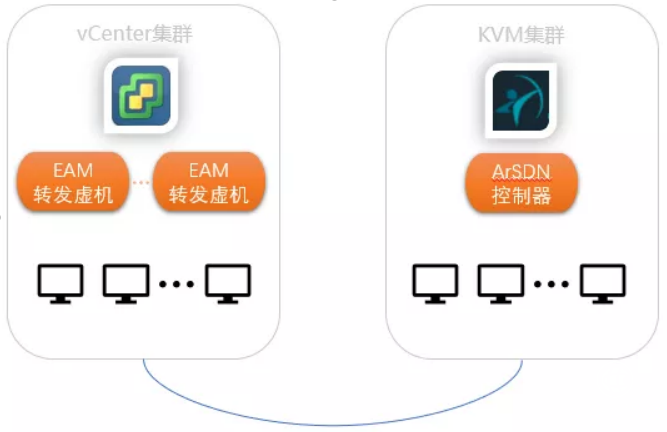 为了更好的和vCenter对接,ArSDN以EAM虚拟机的方式来提供对vCenter转发流量的控制。ArSDN的控制器则可以选择部署在vCenter集群内,或者是一个安超集群中。