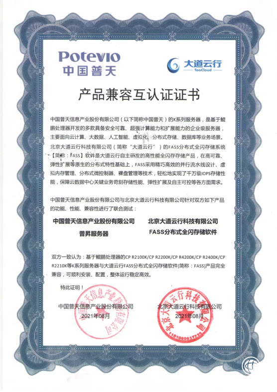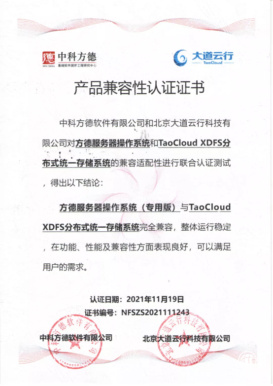 大道云行在信创领域互认证产品个数也达到了近百项。作为具有多年自主研发经验的SDS2.0全闪存储领军企业,早早围绕产业发展进行生态合作是大道云行谋划布局的点睛之笔。强强联合,互认推进,TaoCloud已经与众多国产操作系统、CPU、业务系统、整机及基础软件等产品,进行了兼容性互认证,助力国产化分布式存储的生态体系搭建。
