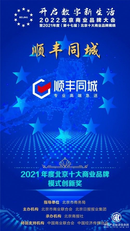 12月28日,“2022北京商业品牌大会暨2021年度(第十七届)北京十大商业品牌系列活动”以直播的形式在云端隆重举行。“2021北京十大商业品牌年度创新奖”作为十大商业品牌的重磅奖项,分为“品质服务奖”、“消费体验奖”、“模式创新奖”三大类,由顺丰同城等35家企业荣获。