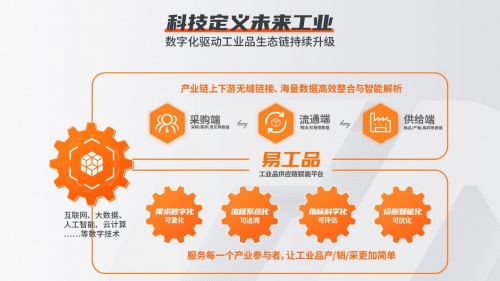 依托供应链系统,易工品利用数字化的便捷和智能从供应链端全面赋能客户的发展,通过数字化智能技术,打通供应链生产、流通、服务等各个环节,构建数智化供应链平台,从而降低客户的供应链成本,提升行业效率,赋能工业品交易生态。