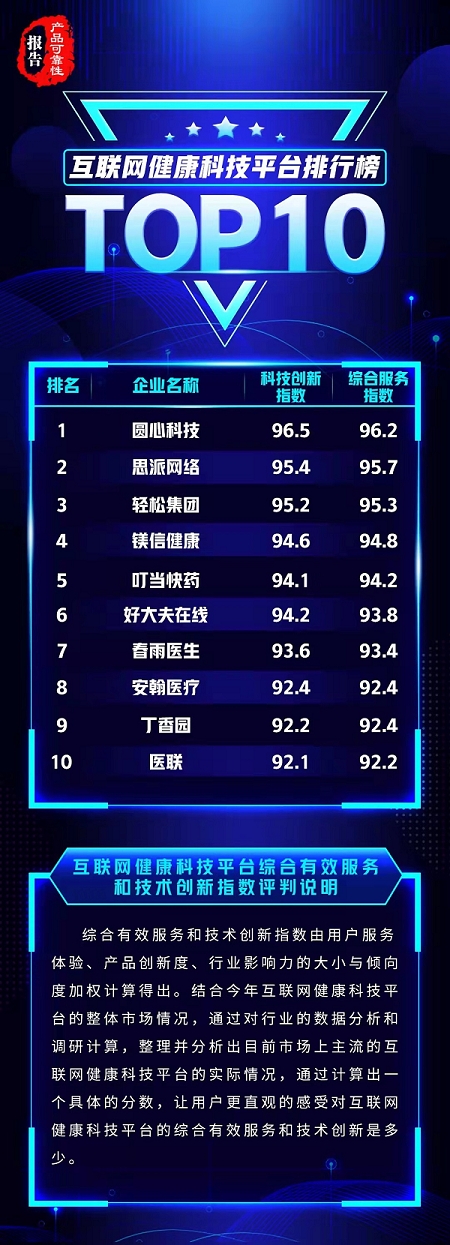 轻松集团利用大数据技术,在从洞察、挖掘到个性化产品服务,通过轻松保严选推出的“年轻人的第一份保险”实践的营销创新基础上,从单一的大病救助模式升级为一条囊括“检+医+药+康+险”等全产业链的多元化健康保障矩阵。日前,由国家市场监管总局主管的《产品可靠性报告》杂志发布互联网健康科技平台排行榜TOP10,轻松集团与圆心科技、思派网络位列前三甲。
