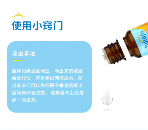 经过50万次实验的EuroDropper滴头技术,使Ddrops成功开创了滴剂型补充维生素D3的先河。滴剂方式不仅能减少瓶内液体和空气的接触,降低被污染和氧化的概率;还能有效控制滴出的速度和剂量,做到零接触精准补充每日营养所需。