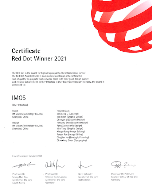 同时,斑马智行联合高端电动汽车品牌—智己,采用全新理念,打造“水”感交互无界灵动的沉浸式座舱系统—IMOS。该系统设计获得2021德国红点设计大奖。