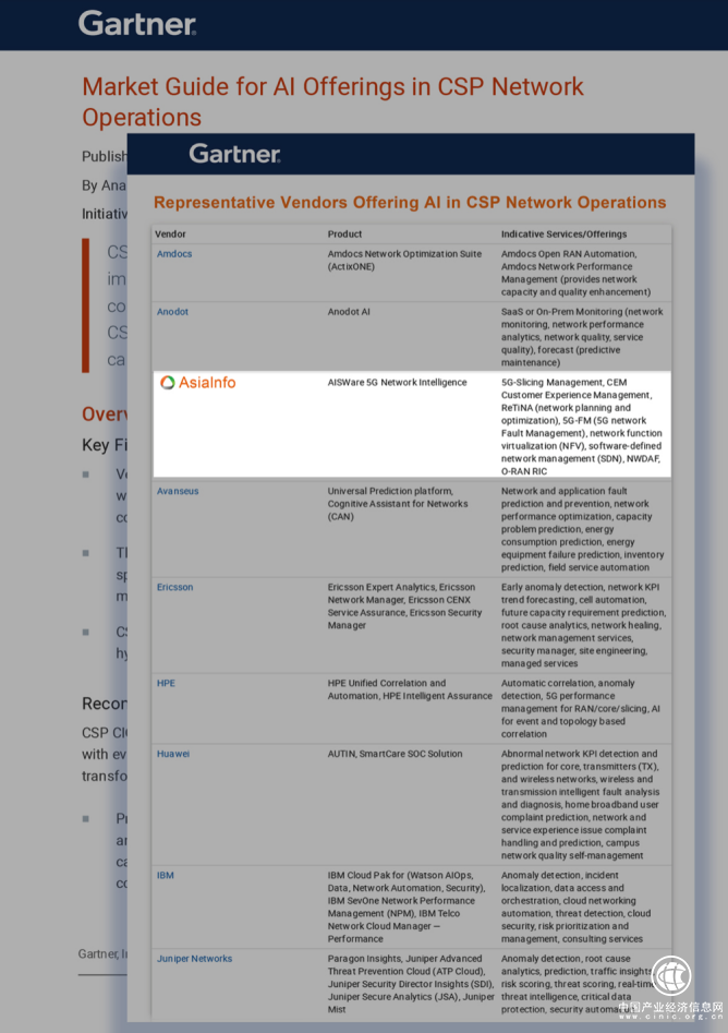 2022年1月12日,亚信科技成功入选全球权威ICT研究与顾问咨询公司Gartner发布的“Market Guide for AI Offerings in CSP Network Operations”,即《全球运营商网络智能化指南》,加入Gartner 2022全球网络智能化主流供应商矩阵,与其他13家厂商一起成为网络智能化全球典型供应商。这标志着亚信科技网络智能化产品及解决方案体系跻身网络智能化领域全球领先行列。