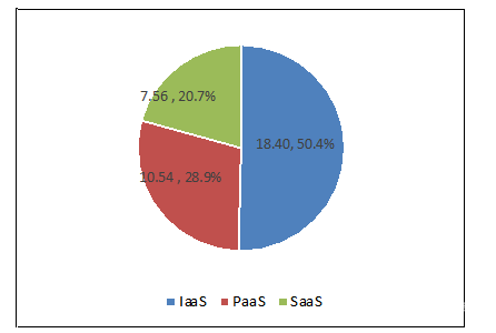 从细分市场看,预计2021年国资云IaaS层面约18.40亿元,在总体中占比50.4%。PaaS层面约10.54亿元,占比28.9%。SaaS层面应用软件潜在需求约7.56亿元,占比20.7%。